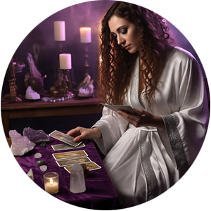 Rooted in a maternal lineage of Tarot and spiritual reading, her journey began early — but her true calling emerged when she chose to fully immerse in the world of symbols, soul work, and sacred guidance.